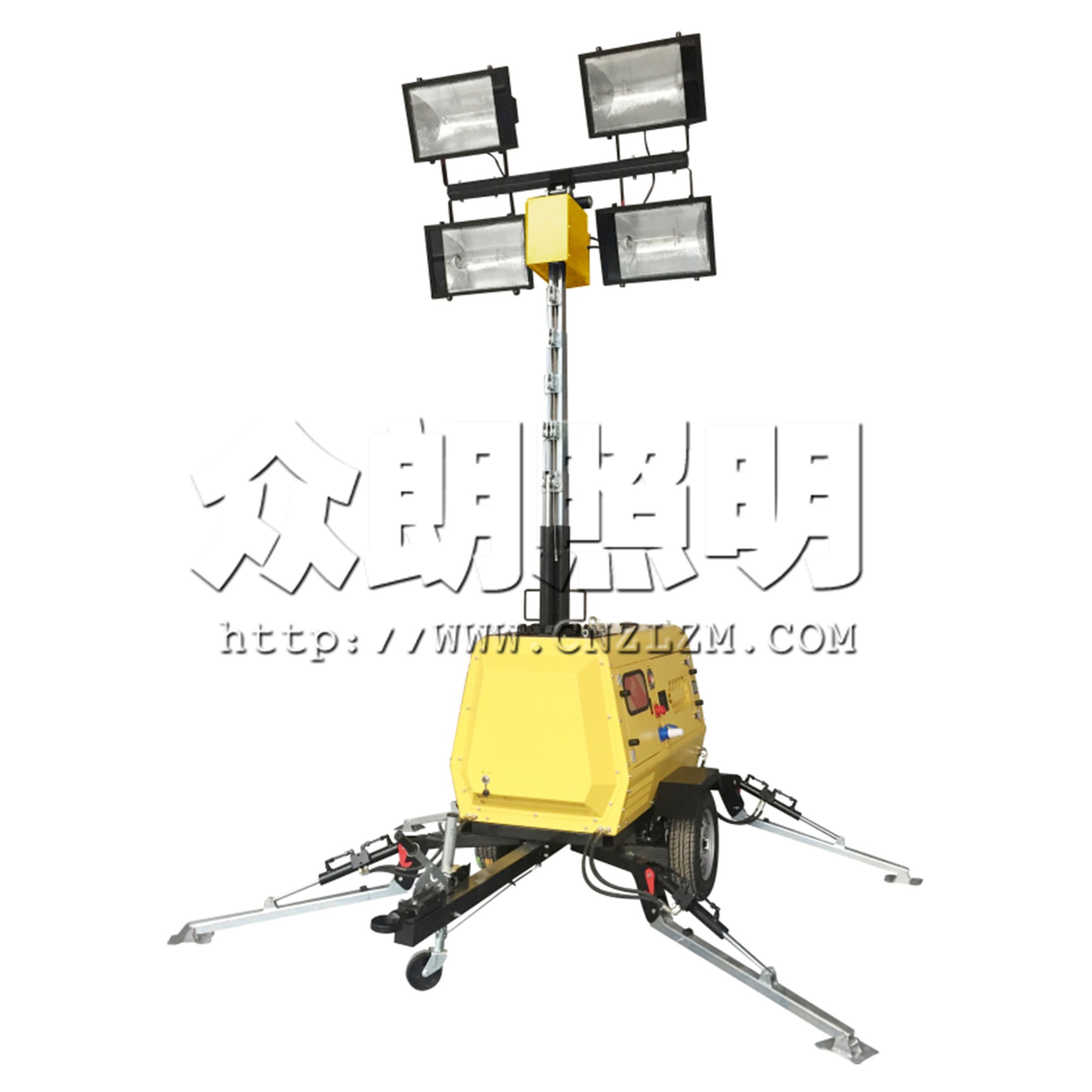 采用4盞1000瓦金鹵燈,燈桿升起10米后,燈光覆蓋半徑可達(dá)120~150米。整體照明遠(yuǎn)近兼顧,照明距離遠(yuǎn),照射面積大。